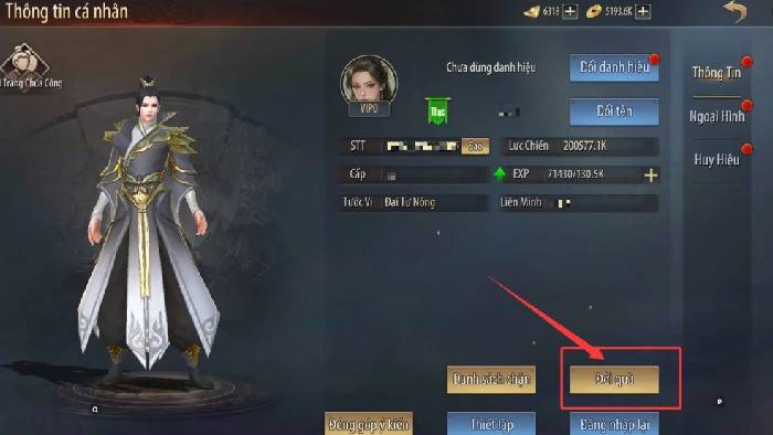 Bước 2: Nhấn nút Đổi quà trong tab Thông tin cá nhân.