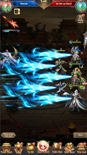 Vì đây là một trò chơi chiến thuật theo lượt nên khi đặt chân vào trận chiến, các tướng mà game thủ lựa chọn vào đội hình sẽ tự động ra chiêu khi đến lượt. Người chơi chỉ cần chiêu mộ tướng và xây dựng một đội hình phù hợp để tạo ra hiệu quả chiến đấu tốt nhất. Nếu cảm thấy sắp xếp đội hình quá phức tạp, nút Bày trận sẽ tự động thiết lập từ các nhân vật mà mọi người đang sở hữu.
