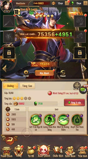 Sau khi chiêu mộ được tướng mới, game thủ cần thăng cấp cho họ để tối ưu hóa sức mạnh. Điều này giúp vượt ải dễ dàng hơn, bằng cách tập trung nâng cấp sức mạnh cho một số tướng chủ lực trong đội hình. Các loại thăng cấp cho anh hùng bao gồm: tăng cấp, tăng bậc và tăng sao.
