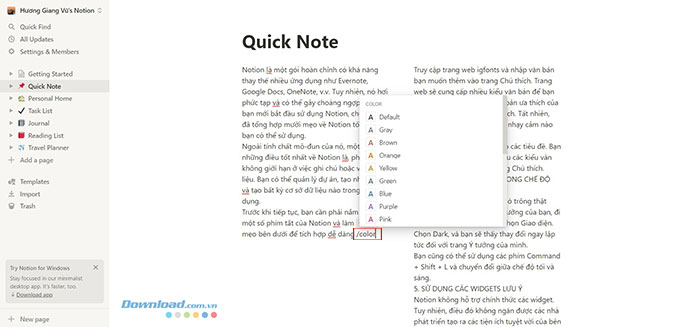Notion khá hữu ích cho các nhà phát triển khi có thể nhanh chóng chuyển một khối nội dung hoặc toàn bộ câu văn thành một mã. Chọn toàn bộ văn bản và gõ phím tắt Ctrl + E hoặc Command + E để biến nó thành inline code.