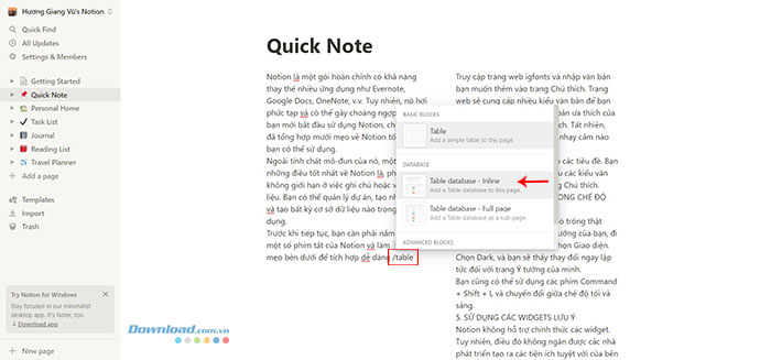 Để tạo ghi chú mới, mọi người chỉ cần gõ Ctrl + N hoặc Command + N (Mac) và Notion sẽ soạn một ghi chú mới.