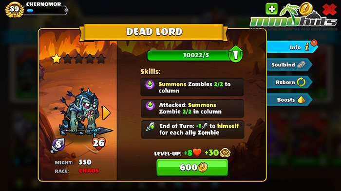Đơn vị cận chiến huyền thoại này mở khóa tại League 3 và tiến hóa từ Living Dead, có 8 ATK và 26 HP. Dead Lord có thể triệu hồi thây ma đến chiến trường và biến kẻ thù cận chiến thành thây ma, đồng thời nhận được +4 ATK vào cuối lượt cho mọi đồng minh.