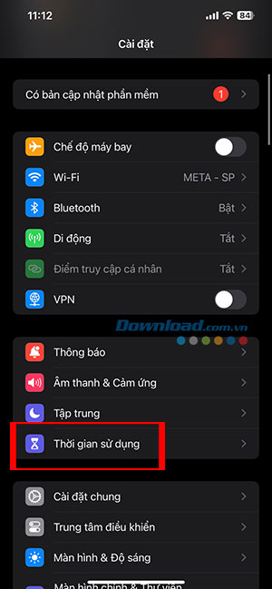 Bước 1: Mở Cài đặt và chọn Thời gian sử dụng.