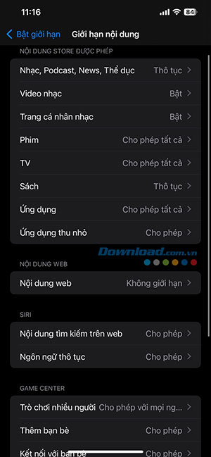 Người dùng cũng có tùy chọn giới hạn nội dung trang web để ngăn trẻ vô tình truy cập các trang web người lớn thông qua Safari hoặc Chrome trên iPhone.