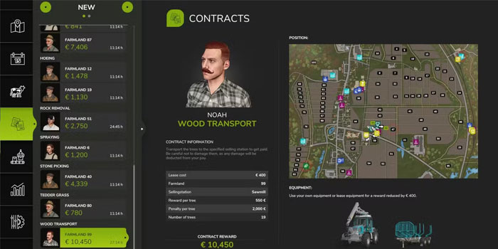 Có rất nhiều hợp đồng mà người chơi có thể nhận và mỗi hợp đồng có một bộ yêu cầu, nhu cầu về thiết bị và khoản thanh toán riêng. Người chơi nên cố gắng nhận những hợp đồng trả lương cao nhất thay vì những hợp đồng không trả nhiều tiền. Tuy nhiên, một số hợp đồng trả lương thấp có thể hoàn thành chỉ trong vài phút.