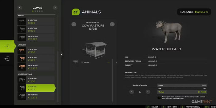 Chăn nuôi trâu có thể mang lại cho người chơi nhiều nguồn thu nhập. Thịt trâu khá có giá trị và sữa trâu có thể được sử dụng để sản xuất một số sản phẩm nhất định, và thậm chí là được bán nguyên con với giá khá hời. Khi so sánh với hầu hết các loài động vật khác có thể mua được, trâu dễ nuôi và chăm sóc hơn đáng kể.