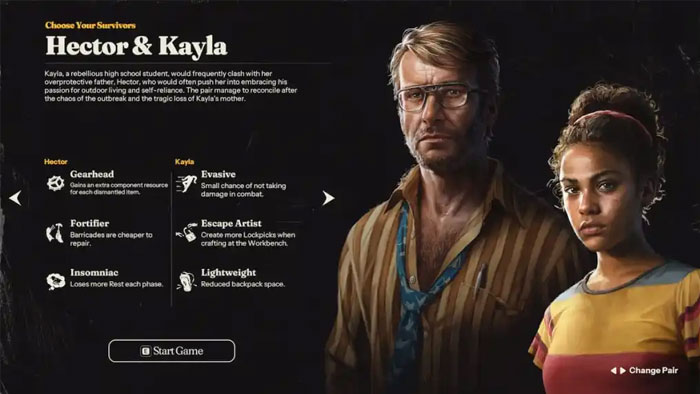 Kayla thì lại là một nhân vật khá toàn diện. Evasive cực kỳ hữu ích nếu bạn thích giao chiến trực diện với xác sống, còn Escape Artist giúp game thủ có nhiều Lockpick hơn, đồng nghĩa với nhiều tài nguyên hơn. Điểm trừ duy nhất là dung lượng balo nhỏ, khiến người chơi phải quay lại cùng một khu vực nhiều lần để gom đủ vật phẩm.