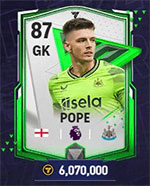 Pope là một ví dụ điển hình về việc số liệu thống kê không phải lúc nào cũng phản ánh được hiệu suất thực sự của cầu thủ trong trò chơi. Mặc dù các số liệu thống kê của anh ấy có thể không gây chú ý ngay lập tức nhưng Pope nổi bật là một trong những thủ môn đáng tin cậy nhất trong FC Mobile 24. Khả năng nổi bật là phản xạ vượt trội, giúp anh ấy cản phá được phần lớn các cú sút, khiến Nick Pope trở thành sự lựa chọn nhất quán và đáng tin cậy giữa khung thành.