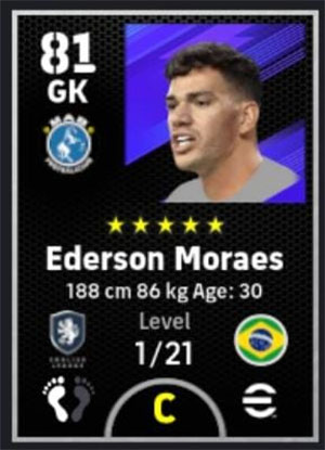 Khi có Ederson là thủ môn, người chơi có thể xây dựng lối chơi triển khai linh hoạt và năng động từ vòng cấm của chính mình. Khả năng của thủ môn này không cần bàn cãi, với Parrying và Reach là những đặc điểm tốt nhất của anh ấy.