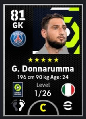 Gianluigi Donnarumma, thủ môn người Ý là ngôi sao triển vọng, tỏa sáng rực rỡ trong eFootball 2024. Phản xạ đặc biệt và kỹ năng cản phá của anh được truyền tải liền mạch vào trò chơi. Tầm vóc to lớn và khả năng thực hiện những pha cứu thua quan trọng dưới áp lực của Donnarumma khiến anh trở thành sự bổ sung tuyệt vời cho bất kỳ đội nào.