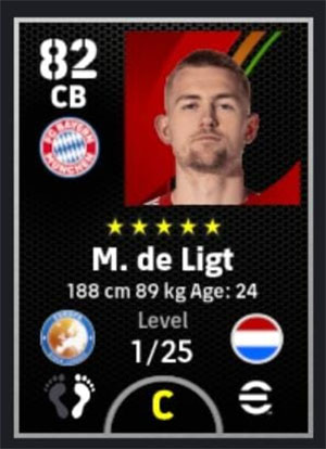 Một trong những cầu thủ có thể lực tốt nhất, De Ligt, đã lọt vào danh sách những cầu thủ xuất sắc nhất nhờ sự ổn định của anh ấy. Anh ấy không chỉ là một tay tắc bóng xuất sắc mà còn có những đặc điểm thể chất ấn tượng, khiến Matthijs de Ligt trở thành một cầu thủ đáng được đánh giá cao.