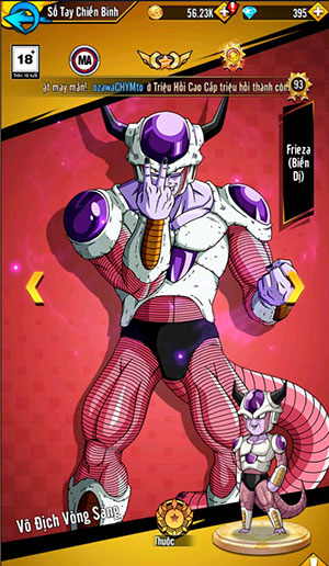 Fieza (Biến dị) là một nhân vật tinh túy khác của phe Ma nhờ khả năng gây sát thương đơn lên kẻ thù có HP thấp nhất, cộng hưởng với việc tăng chỉ số dựa trên lượng HP còn lại của chúng, khiến anh ta trở thành đối thủ đáng gờm nhất của Piccolo. Fieza còn có thể tăng chỉ số bạo kích, năng lượng cho toàn đội, làm chủ mọi cuộc đấu PvP.