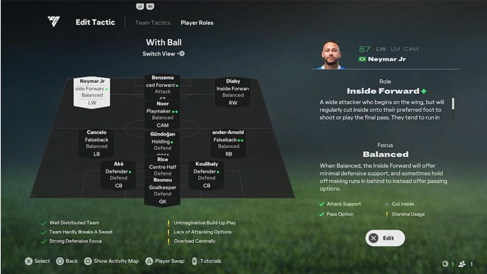 Ngoài ra, game thủ có thể đảo ngược các hậu vệ biên để tràn vào hàng tiền vệ, cung cấp nhiều lựa chọn chuyền bóng hơn nếu muốn.