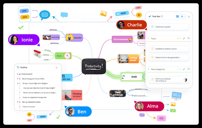 Các thành viên và khách mời có thể cùng tham gia sơ đồ tư duy, để lại bình luận, theo dõi thay đổi và cùng phát triển ý tưởng trong một không gian số chung.