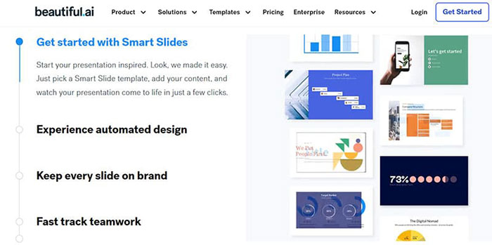 Trên thực tế, điều đó có nghĩa là mọi người có quyền truy cập vào Smart Slides, sẽ điều chỉnh và cải thiện tính thẩm mỹ khi nhập nội dung. Giống như có một nhà thiết kế AI chuyên dụng cải thiện giao diện và luồng của bài thuyết trình khi người dùng đang làm nổi bật nó bằng nhiều thông tin hơn. Thêm vào đó, Beautiful.ai sẽ tạo vẻ đẹp tổng thể của các bài thuyết trình.