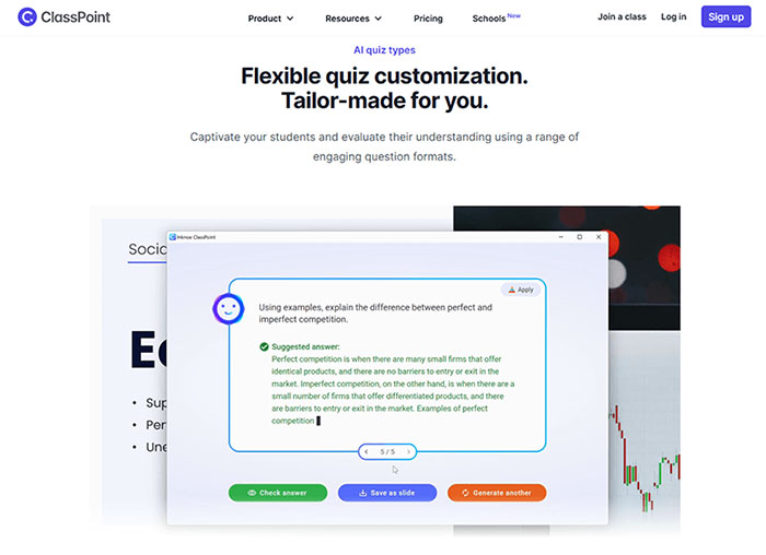 ClassPoint AI là một trong nhiều công cụ AI để tạo bài thuyết trình PowerPoint, tập trung chính vào tính tương tác và sự tham gia. Cụ thể, bot AI này sẽ quét các slide, hiểu nội dung và sau đó đưa ra các câu hỏi sáng tạo, có liên quan để hỏi người xem. Do đó, đây là một trong những công cụ hàng đầu cần cân nhắc nếu mọi người đang tạo PowerPoint giáo dục hoặc hướng dẫn.
