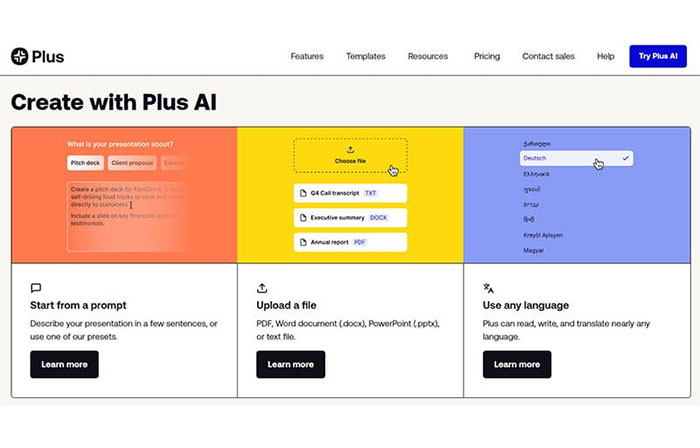 Plus AI là ứng dụng AI dành cho PowerPoint, cũng hoạt động với Google Slides, có thể sử dụng để tạo toàn bộ bài thuyết trình, không chỉ các slide riêng lẻ, từ một lời nhắc duy nhất. Chỉ cần nhập nội dung bài thuyết trình và AI sẽ thực hiện hầu hết công việc khó khăn cho bạn.