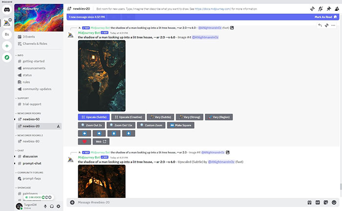 Midjourney là một công cụ AI thiết kế hình ảnh tạo ảnh từ văn bản (text-to-image). Để sử dụng nền tảng này, mọi người cần truy cập qua Discord, điều mà một số người có thể không thích. Tuy nhiên, khi đã quen, công cụ này thực sự rất tiềm năng. Người dùng chỉ cần gửi lệnh /imagine trong chat Discord để bắt đầu nhập mô tả hình ảnh.