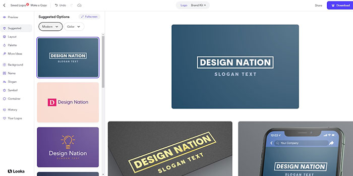 Đối với mục tiêu xây dựng thương hiệu doanh nghiệp, Looka giúp tối ưu quy trình và tạo ra những ý tưởng ấn tượng, giúp mọi người chuyển sang giai đoạn tiếp thị nhanh chóng.