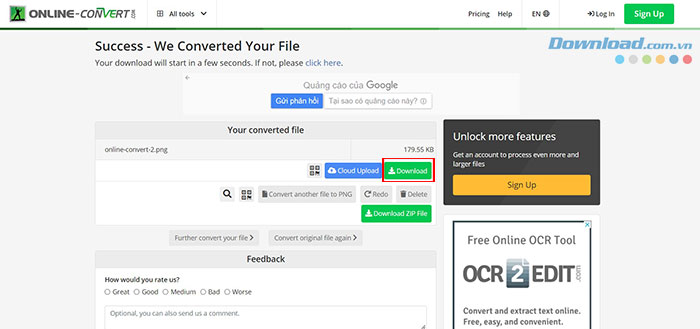 Cuối cùng, tệp mới sẽ được tự động tải xuống hoặc mọi người có thể chọn tải xuống file ZIP.