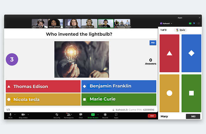 Kahoot! thu hút học sinh với những kiến thức bằng các trò chơi vui nhộn và mang tính giáo dục, khiến nó trở thành một trong những ứng dụng lớp học tốt nhất. Thầy cô có thể tạo câu đố hoặc "Kahoot" của riêng mình bằng cách phát triển các câu hỏi và thêm hình ảnh. Ngay khi câu đố đã sẵn sàng, giáo viên sẽ nhận được mã để cung cấp cho học sinh của mình. Từ đó, học sinh nhập mã vào ứng dụng trên thiết bị của riêng mình và có thể bắt đầu chơi.