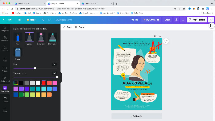 Giáo viên dễ dàng chia sẻ và nhận thiết kế với học sinh sau khi học sinh được thêm vào Classroom. Mọi người có thể bắt đầu tạo thiết kế của riêng họ với nhiều mẫu, phần tử và các tùy chọn tùy chỉnh mà Canva cung cấp. Ứng dụng này có một thư viện rộng lớn để giúp người dùng bắt đầu chỉnh sửa để tạo ra các thiết kế chính xác theo cách mình muốn.