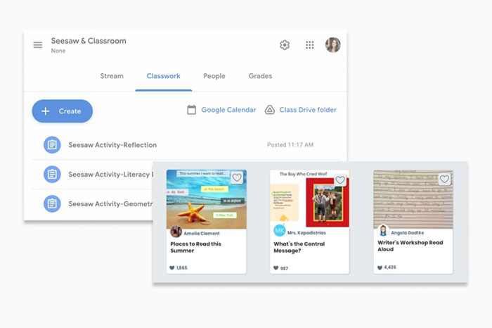 Khi tạo một lớp học, người dùng có thể duyệt thư viện hoạt động của ứng dụng. Nhập môn học cùng với điểm số và nó cũng sẽ hiển thị các hoạt động mà giáo viên đồng nghiệp đã tạo. Nếu muốn tạo các hoạt động của riêng mình, giáo viên cũng có thể chia sẻ chúng với cộng đồng Seesaw Class.