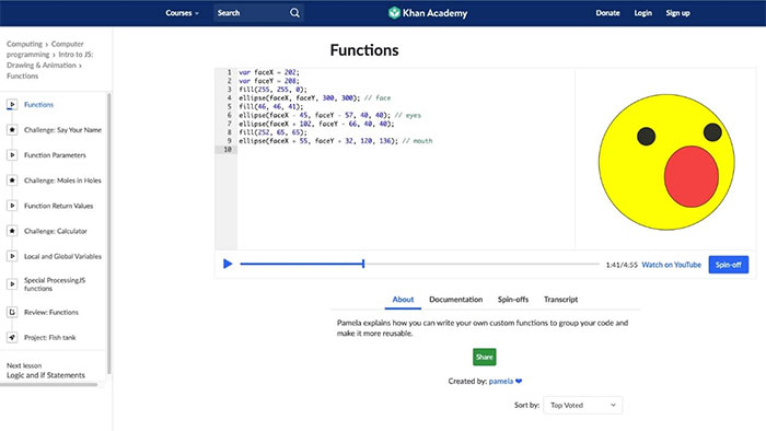 Khan Academy là lựa chọn phù hợp cho những bạn lớn tuổi hơn hoặc đã có kiến thức lập trình cơ bản, muốn tự học song song với các lớp học trực tiếp. Với Khan Academy, học sinh có thể học theo tốc độ riêng của mình, bắt đầu từ việc củng cố kiến thức còn thiếu, sau đó tiến tới các kỹ năng nâng cao hơn. Một điểm cộng lớn là trẻ không cần tải bất cứ phần mềm nào, vì trình soạn thảo mã đã được tích hợp sẵn trên website.