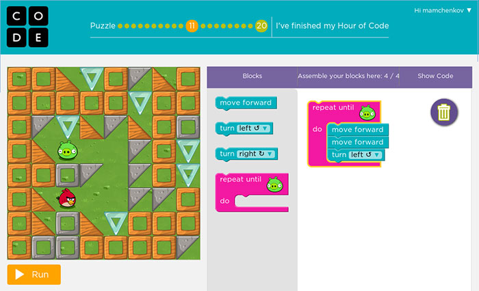 Một cách hay để bắt đầu là với bài học Hour of Code. Trong chuỗi bài học lập trình nổi bật nhất, học sinh sẽ học cách tạo ra những hình vẽ và hoạt hình thú vị bằng JavaScript kết hợp với thư viện ProcessingJS, giúp các em dễ hình dung và nắm bắt các khái niệm lập trình phức tạp một cách trực quan.