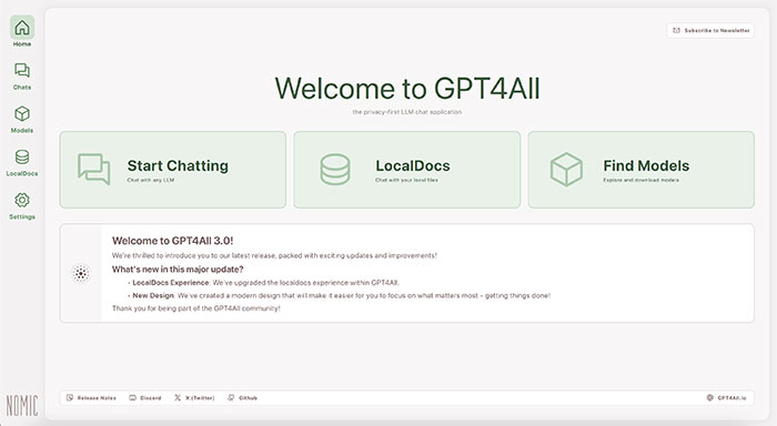 GPT4All cho phép chạy LLM trực tiếp trên máy cá nhân, không gửi bất kỳ dữ liệu nào ra ngoài.