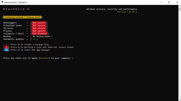 Ngay sau khi khởi chạy Blackbird, nó sẽ bắt đầu quét hệ thống để tìm các sự cố tiềm ẩn, sau đó đưa ra đề xuất fix, chặn, vô hiệu hóa và sửa đổi hàng nghìn cài đặt Windows nhỏ có khả năng ảnh hưởng đến bảo mật và quyền riêng tư của người dùng.