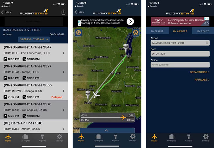 Một trong những tính năng tốt nhất của FlightStats là bản đồ trực tiếp theo dõi chuyến bay theo thời gian thực, hiển thị vị trí chính xác của máy bay. Thông tin chuyến bay cũng có thể nhanh chóng được chia sẻ trực tiếp từ ứng dụng.