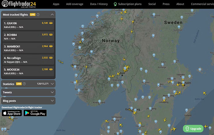 Planes Live, một ứng dụng theo dõi chuyến bay mạnh mẽ, có thể sử dụng để theo dõi không chỉ các chuyến bay thương mại mà còn cả các máy bay trên khắp thế giới.