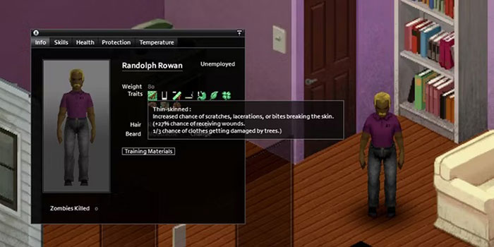 Mặc dù là một đặc điểm nguy hiểm đối với những người chơi mới bắt đầu, nhưng da mỏng cho thêm 8 điểm để chi cho những đặc điểm tích cực khác. Điều này làm tăng khả năng bị zombie tấn công làm rách da, điều mà thoạt nghe có vẻ là một ý tưởng tồi, nhưng lại là lựa chọn phổ biến của những người chơi có kinh nghiệm.