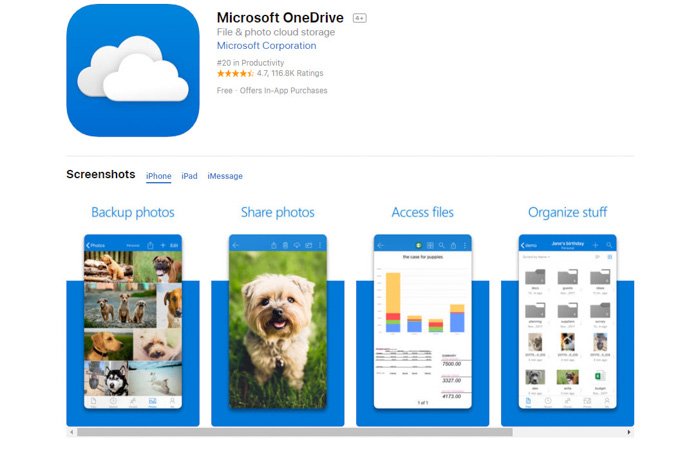 Mặc dù đây là một sản phẩm của Microsoft nhưng nó vẫn khả dụng cho những người có bộ nhớ iPhone đã đầy và đang tìm kiếm ứng dụng lưu trữ đám mây miễn phí. Ứng dụng Microsoft OneDrive cung cấp 5GB miễn phí.