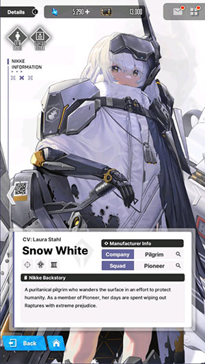 Mặt khác, Liter rất hữu ích trong việc giữ cho lớp bảo vệ của đội ở trạng thái tốt nhất, đồng thời cung cấp một lực tấn công lớn khi sử dụng Kỹ năng bùng nổ của mình. Cuối cùng, Privaty mang đến khả năng tấn công đáng kể khi cả đội bước vào Full Burst. Tất cả các phép bổ trợ này dành cho Snow White về cơ bản giúp hạ gục hầu hết kẻ thù trong thời gian ngắn.