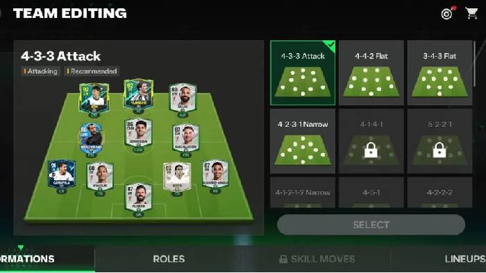 Lưu ý: khi chọn CAM, hãy ưu tiên cầu thủ thuận chân mạnh, vì điều này sẽ ảnh hưởng đến hiệu quả của những cú sút finesse từ ngoài vòng cấm.