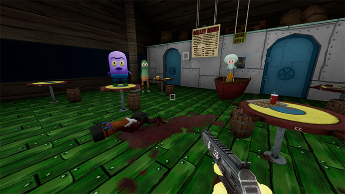 Người chơi sẽ điều khiển SpongeBob, thu được công thức bí mật và chuẩn bị Krabby Patty cho khách hàng. Hiện được trang bị một khẩu súng trường tấn công sau khi đặt nhầm khẩu súng lục của mình, Spongebob khám phá Chum Bucket và bắn robot, thu thập đạn và phục hồi sức khỏe bằng ống tiêm. Cuộc chiến với trùm với robot Krabs rất khó khăn và cái kết khiến người chơi băn khoăn về những gì vẫn chưa xảy ra.