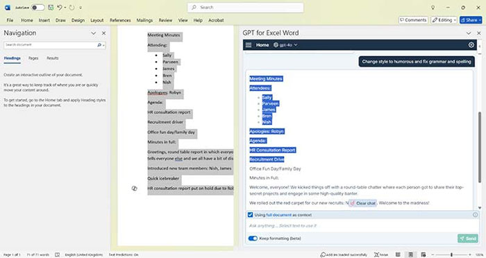 Sau khi thực hiện xong và chấp nhận các điều khoản về quyền riêng tư, người dùng có thể yêu cầu tiện ích mở rộng thay đổi phong cách viết, sửa lỗi và nhiều hơn nữa.