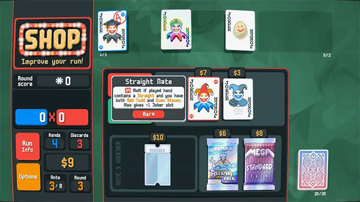 JankJonklers thêm 15 lá bài Joker mới vào trò chơi với những hiệu ứng rất độc đáo. Một lá bài có tên là Suspicious Vase và biến 2, 3 và 4 thành Glass Cards, hay lá Ternary System cung cấp một lá bài hành tinh khi chơi Three of a Kind mà không có lá bài nào khác. Thêm những lá bài Joker mới này vào là một cách tuyệt vời để làm cho Balatro trở nên hấp dẫn hơn mà không đi quá xa so với trò chơi gốc.