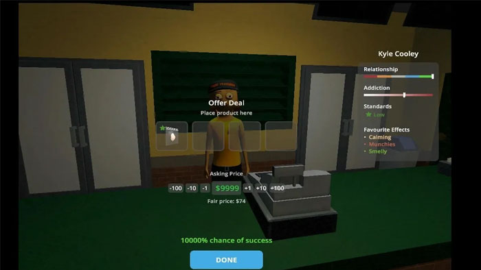 Khi chào hàng một sản phẩm cho khách tiềm năng, có khả năng họ sẽ từ chối mẫu thử hoặc thỏa thuận của người chơi. Nếu thấy điều này phiền phức và muốn loại bỏ yếu tố may rủi (RNG), game thủ có thể cài đặt Success Rate mod. Mod này đảm bảo khách hàng luôn chấp nhận giao dịch, giúp mọi người nhận tiền 100%.