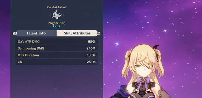 Nightrider là điều khiến Fischl giỏi như vậy, nó triệu hồi một con quạ tên là Oz gây sát thương điện định kỳ. Vì vậy, dành một Crown of Sight cho Fischl chắc chắn là một ý kiến hay.