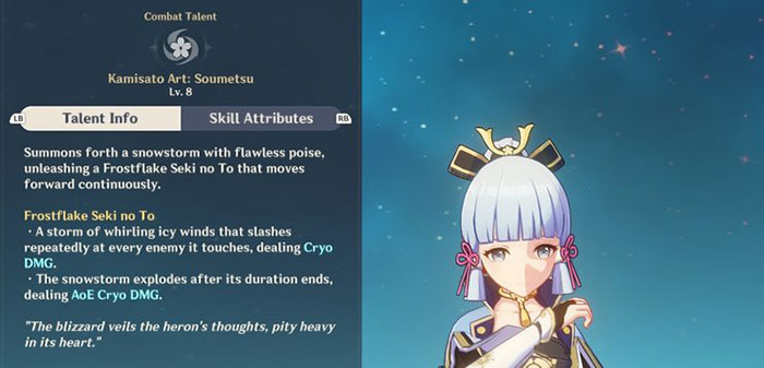 Tương tự như Hu Tao, Ayaka cũng nằm trong top 6 nhân vật DPS. Tuy nhiên, không giống như Hu Tao, cô ấy chủ yếu gây sát thương bằng cách sử dụng kỹ năng nộ, Soumetsu. Thiên phú này có quy mô khủng khiếp, với 20 lần đánh trong vòng 5 giây. Cho dù Ayaka đang ở trong đội cố định vĩnh viễn hay đội hoán đổi nhanh chóng, thì sự bùng nổ của cô ấy nên được ưu tiên trước.