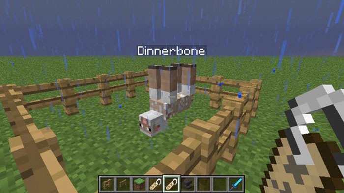 Người chơi có thể lật ngược một mob bằng cách đổi tên nó thành Dinnerbone. Tất cả mob ngoại trừ Ender Dragon, Squid và Glow Squid sẽ đảo lộn sau khi được đổi tên. Đây là một easter egg về Nathan 'Dinnerbone' Adams, một giám đốc kỹ thuật tại Mojang Studios, người đã làm việc trong phiên bản Java và Bedrock.