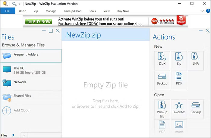 WinZip thường được sử dụng để mở các tệp ZIP nhưng cũng mở một số định dạng khác, bao gồm RAR, 7z, CAB và ISO. Với giao diện đơn giản, WinZip cho phép mở các tệp RAR ngay lập tức.