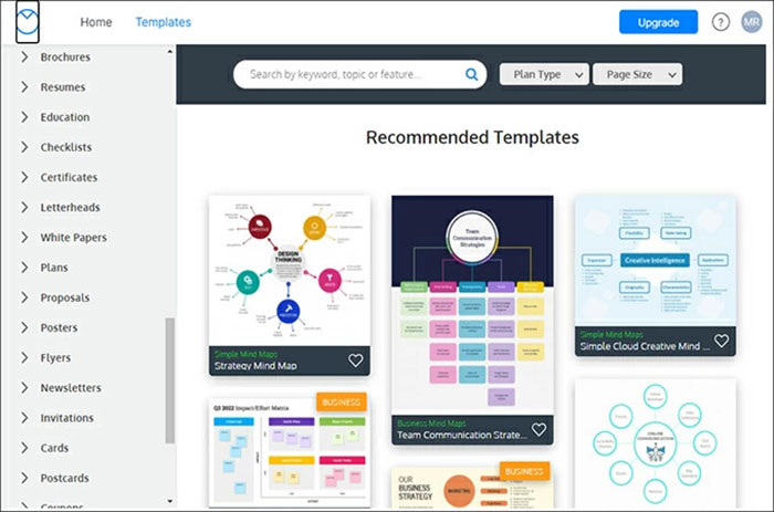 Canva chắc chắn ứng dụng thiết kế đồ họa tối ưu nhất, với đầy đủ các tính năng cho mọi mục đích sử dụng, bao gồm cả thiết lập sơ đồ tư duy. Điều khiến Canva nổi bật chính là sự đa dạng của các mẫu template sơ đồ tư duy có sẵn, đáp ứng mọi nhu cầu từ làm việc đến học tập.