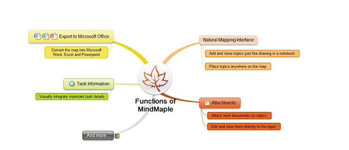 Nhằm giúp lập sơ đồ tư duy chi tiết, MindMaple Classic còn có các công cụ bổ sung để có thể thêm các mối quan hệ, hyperlink, tệp,... vào sơ đồ tư duy. Người dùng có thể cá nhân hóa sơ đồ tư duy bằng màu sắc, hình ảnh, clip art,... để trang trí sơ đồ một cách dễ dàng.