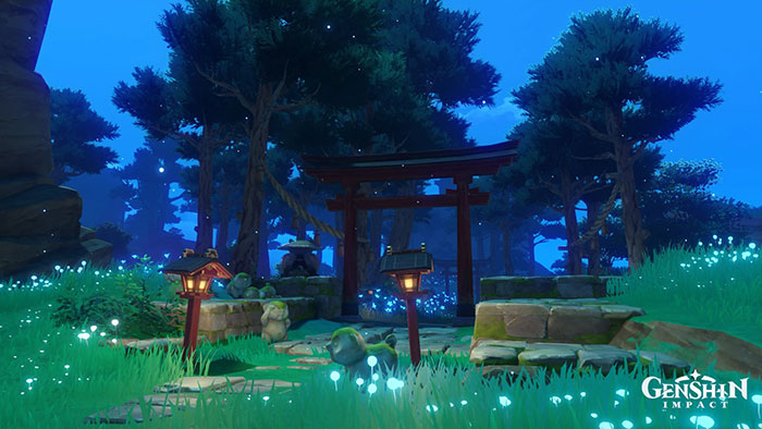 Đền thờ Sangonomiya là một vị trí đẹp trong Genshin Impact có chứa những vỏ sò khổng lồ. Thật dễ dàng để chụp những bức ảnh đáng nhớ ở đây, và thậm chí còn có những bong bóng bay lơ lửng trong không khí mang đến cảm giác thơ mộng.