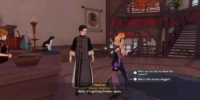 Ngoài ra còn có một số nhiệm vụ sẽ xuất hiện xung quanh nhà trọ và các yêu cầu hàng ngày sẽ xoay quanh việc sửa chữa nó. Wangshu Inn cũng là một địa điểm quan trọng đối với Xiao, Yaksha cuối cùng.