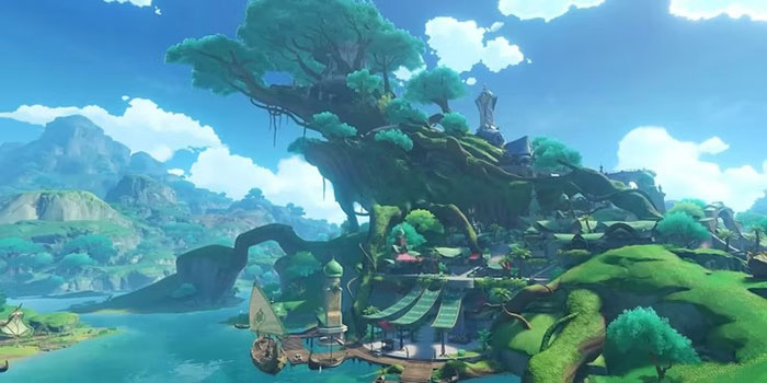 Trong Rừng Avidya, Thành phố Sumeru tọa lạc, được xây dựng trên đỉnh Cây Thần. Hãy chắc chắn chọn loài thực vật độc đáo ở đây có tên là Padisarah, được sử dụng để nấu các món ngon đặc biệt của người Sumeru. Thành phố rất rộng lớn và chắc chắn sẽ làm hài lòng game thủ với số lượng điểm tham chiếu giúp điều hướng nhiều khu vực.